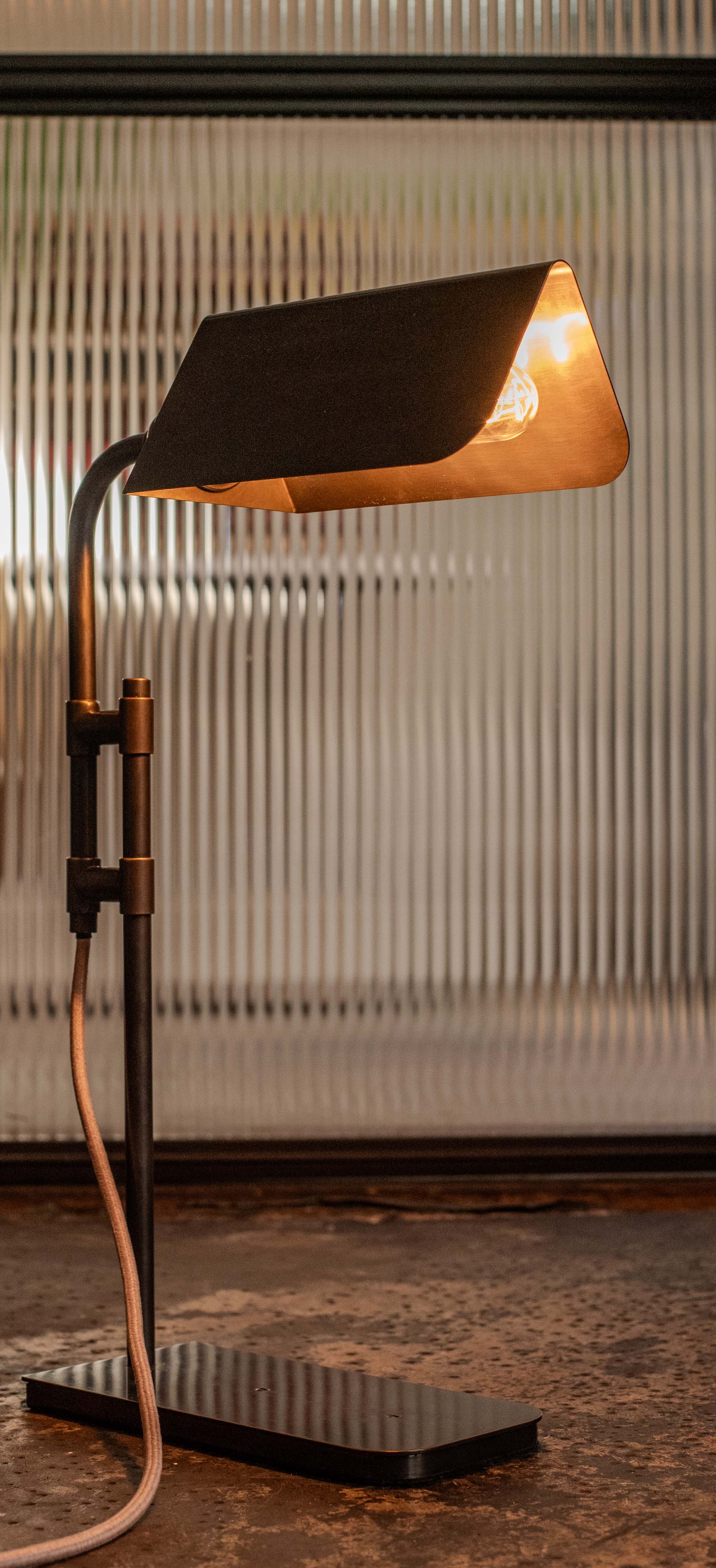 A compact, purposeful table lamp designed for moments of quiet focus.
