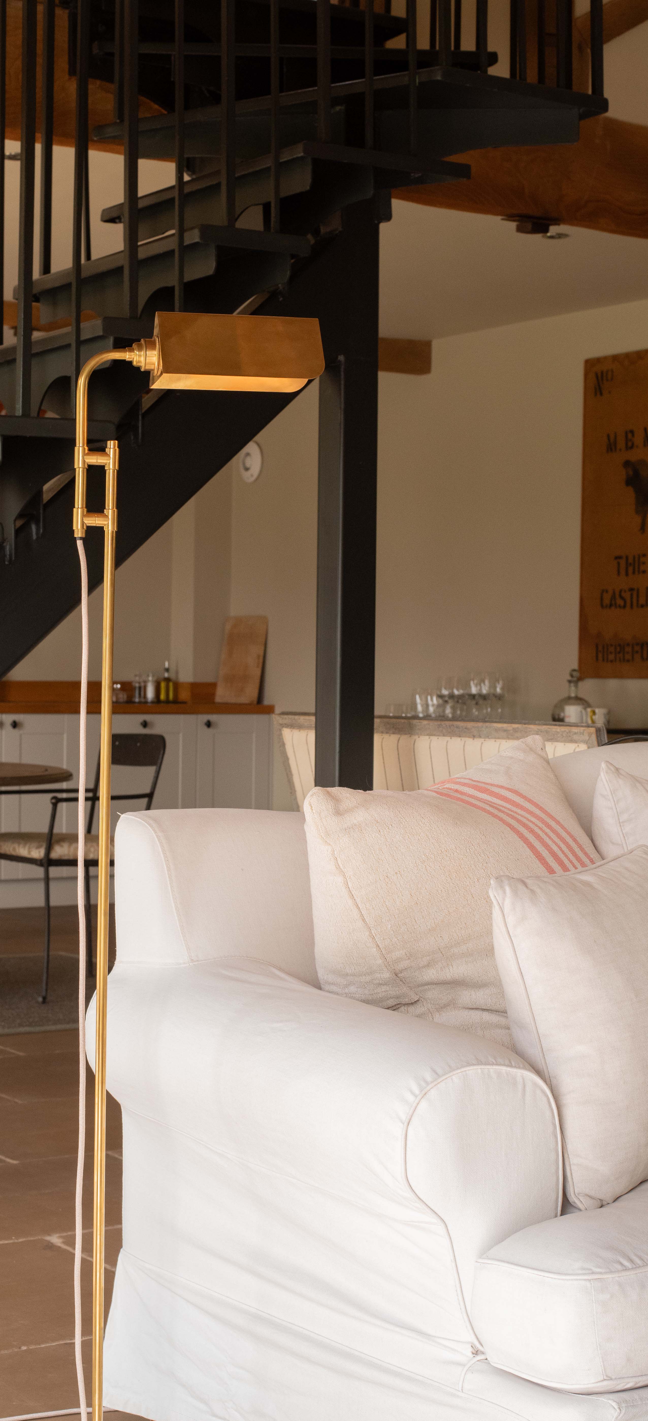 A refined floor lamp designed for comfortable, focused light beside a sofa or armchair.